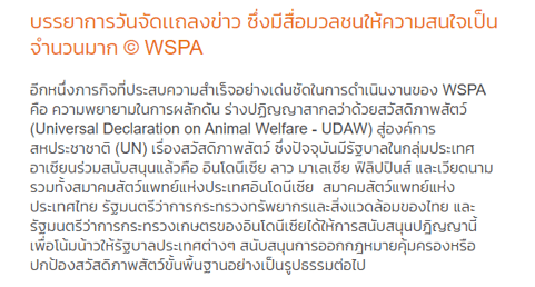 ตัวอย่างงาน WSPA ร่วมกับรัฐบาลประเทศลาวและมาเลเซียนำเสนอเรื่องสวัสดิภาพสัตว์ ในที่ประชุม ASEAN Sectoral Working Group on Livestock และที่ประชุมมีมติรับรองที่จะพัฒนาเรื่องสวัสดิภาพสัตว์ร่วมกันใน ASEAN ที่มา: https://www.worldanimalprotection.or.th/news/2011/helping-animals-welfare แบ่งปันสิ่งนี้: กดเพื่อแชร์บน X(เปิดในหน้าต่างใหม่) X กดเพื่อแชร์บนเฟซบุ๊ค(เปิดในหน้าต่างใหม่) เฟซบุ๊ค กดเพื่อแชร์บน LinkedIn(เปิดในหน้าต่างใหม่) LinkedIn ถูกใจ กำลังโหลด...